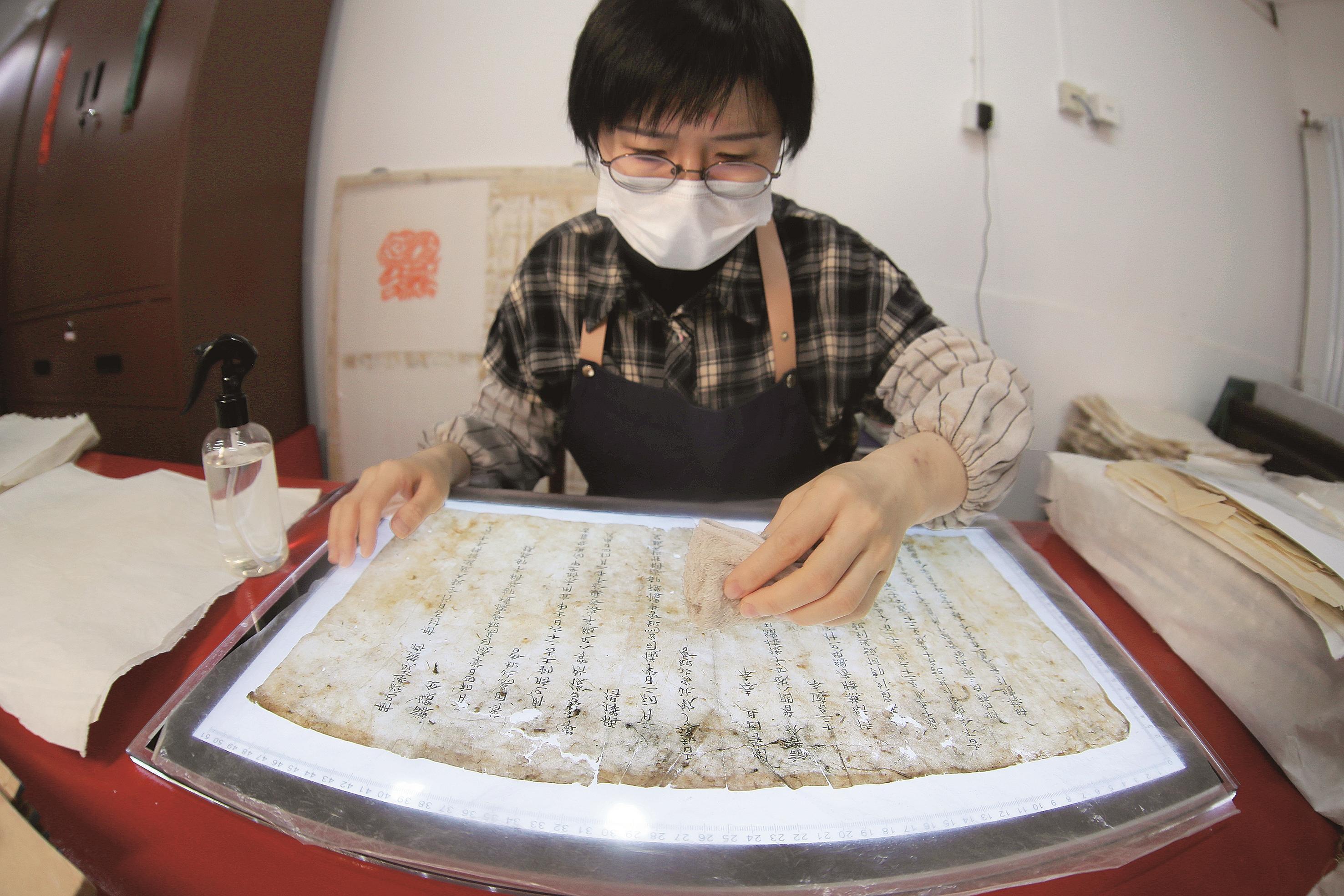 古籍修复需要经过材质检测、修复材料选配、修补、装订等若干流程。