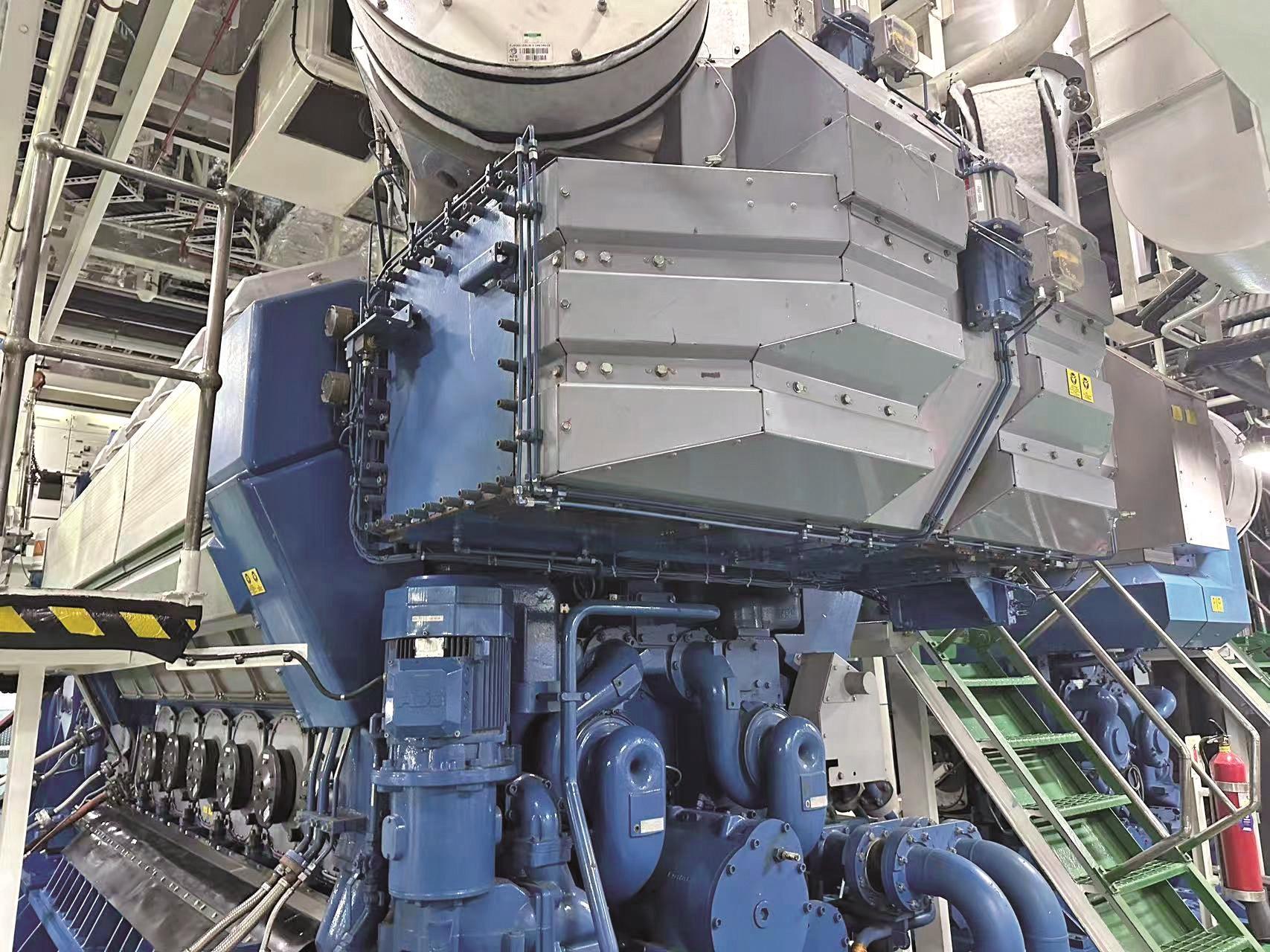 当柴油在发动机内燃烧时,化学能转化为机械能,带动发电机高速旋转,进而转化成6600伏的中压电。这个电压是家用220伏电压的30倍,适用于船舶大功率电力驱动。