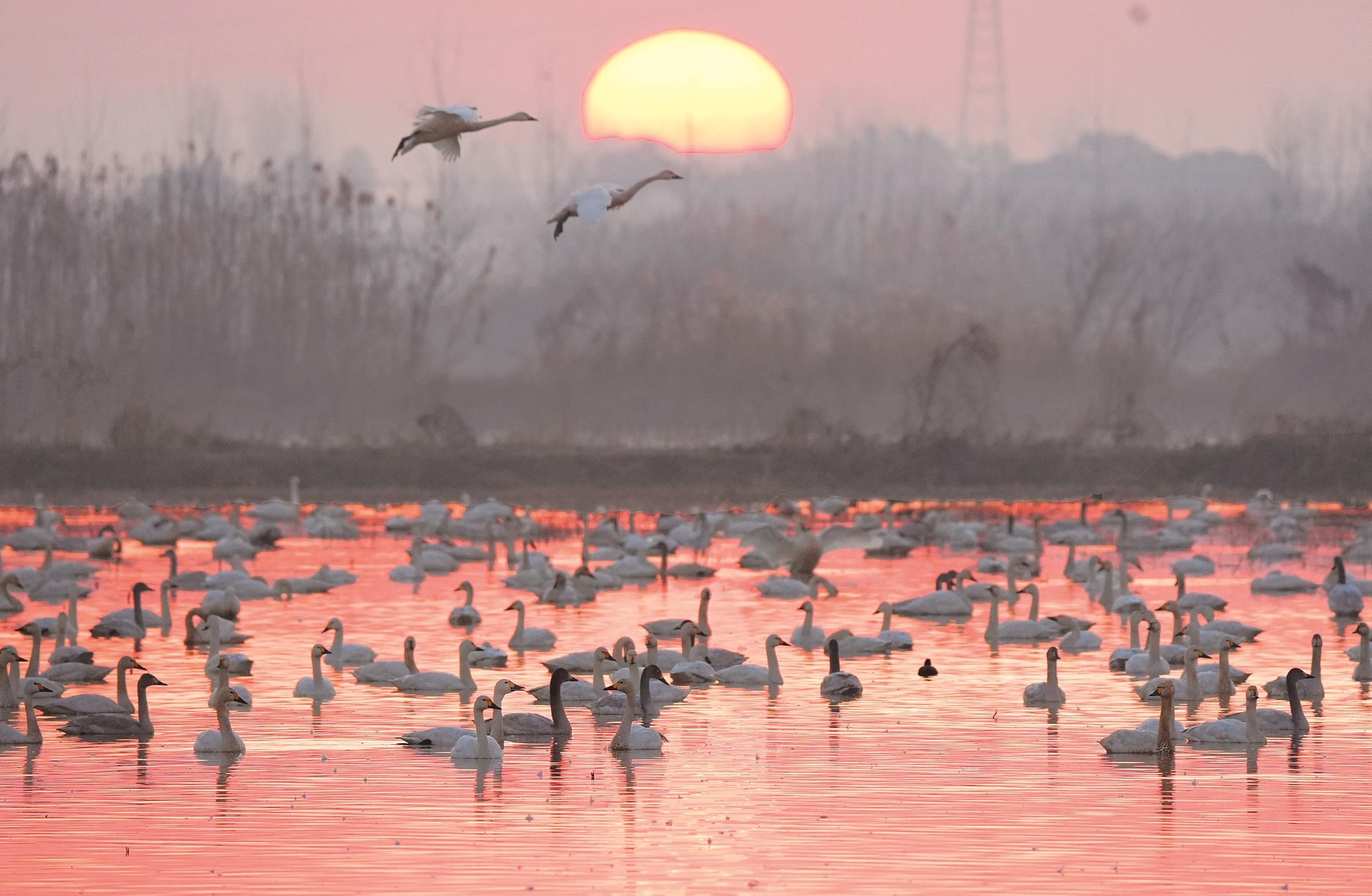 江西鄱阳湖区,2025年已记录到越冬水鸟65种,数量突破36万只;