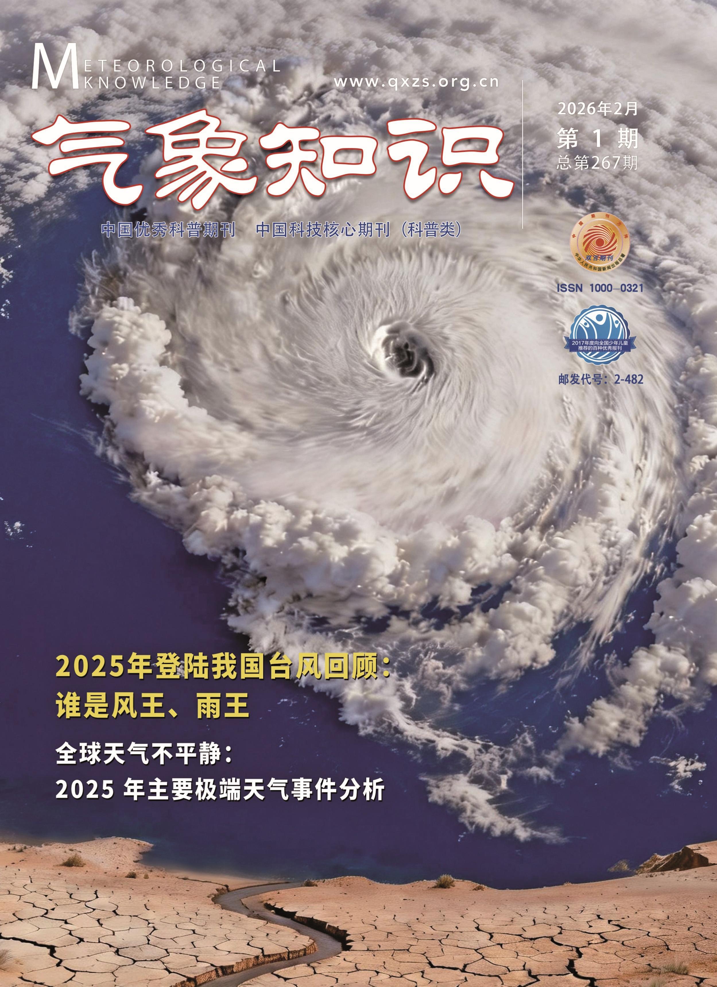2026年《气象知识》第1期带您回顾2025年国内国际高温、暴雨、台风等极端天气气候事件,分析其成因和影响,思考在气候变化大背景下,我们应该如何应对。