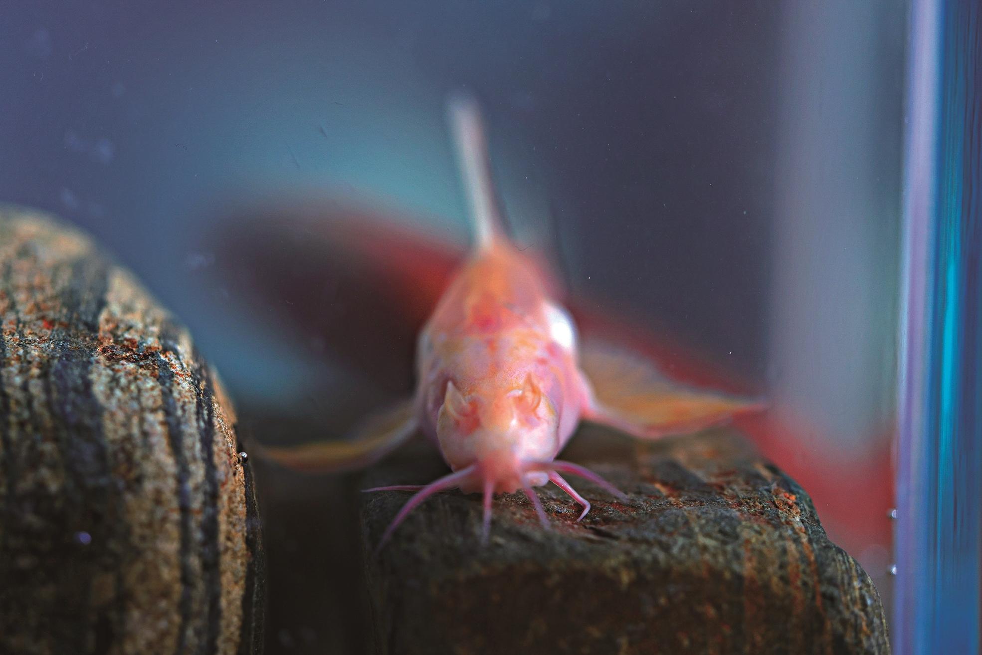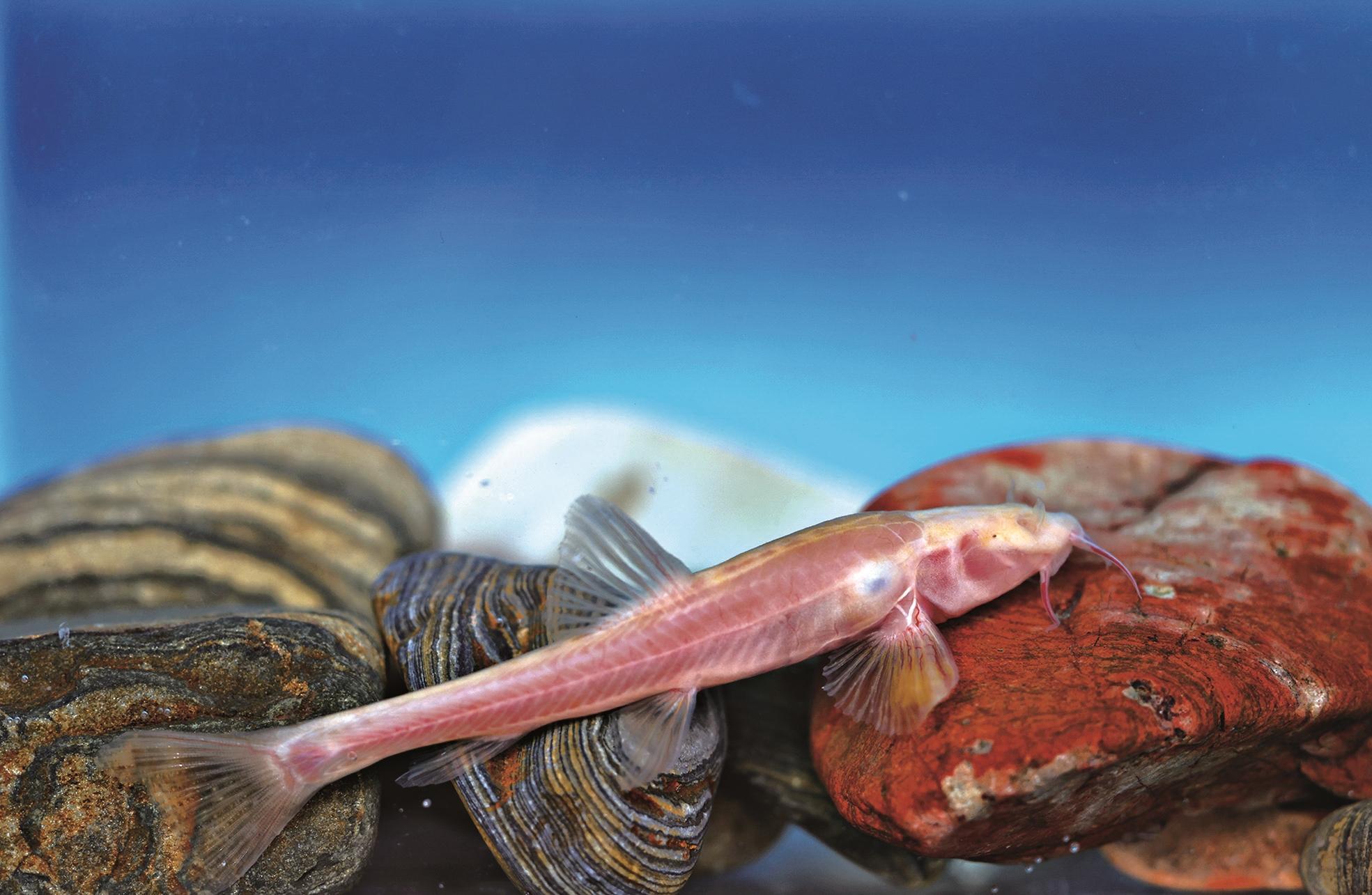 你知道吗,在大山深处的洞穴或地下河流之中,住着一些特殊的“居民”——洞穴鱼类。它们的一生几乎在无光、黑暗,且缺少食物的水域中度过。这种极端的生存条件,使得洞穴鱼类出现了眼睛缩小或消失、身体色素退减、身体透明等结构性的变化。洞穴鱼在演化过程中,胡须和鳍条会变得更长,感觉器官变得更加发达,以便更好地感知周围环境。