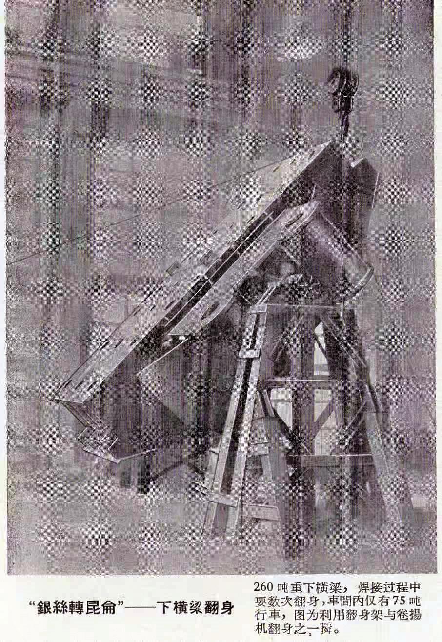 为解决吊装与翻身难,工人们将钢丝绳牢固绑扎,动用四五十台千斤顶,将重达300吨的下横梁,以毫米级精度缓缓顶升至6米高的翻身架,随后轻拉钢丝绳,这一庞然大物便能平稳自如地转向。这套巧夺天工的操作方法,被工人们称作“蚂蚁顶泰山”“银丝转昆仑”。