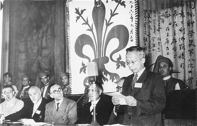 1956年9月,在意大利佛罗伦萨,竺可桢在第8次国际科学史大会上致辞。