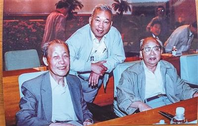 20世纪90年代中期,梁思礼院士(中)与黄纬禄(左)、屠守锷(右)两位院士合影。