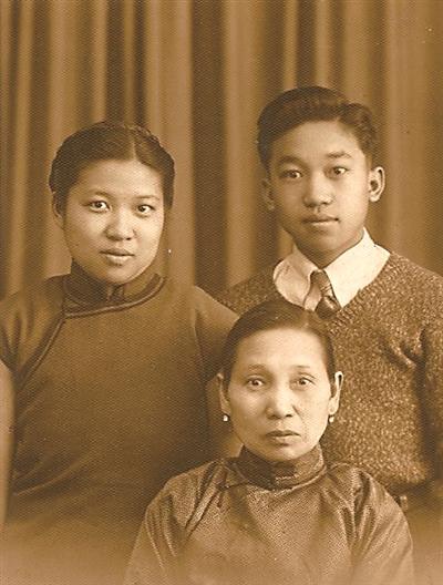 1940年秋,梁思礼(后左二)与母亲王桂荃(前)、六姐梁思宁(后左一)合影。