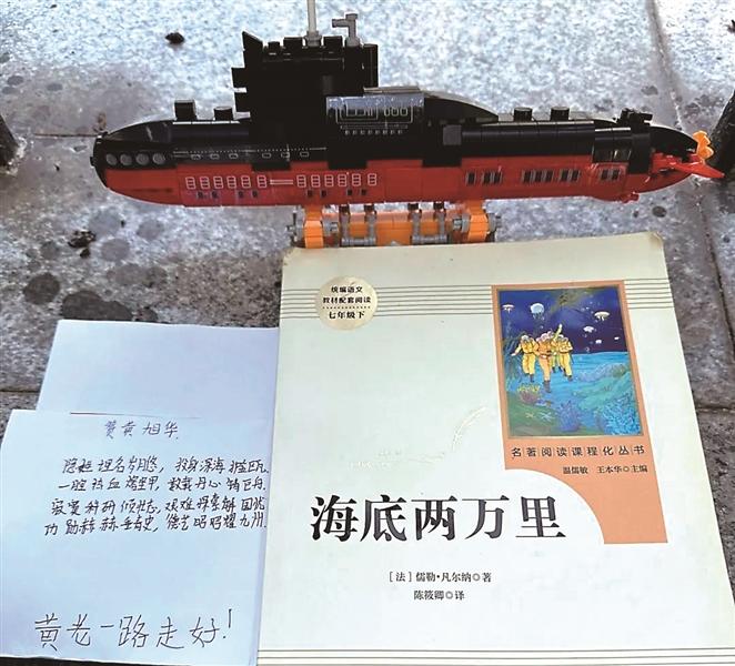 黄旭华院士吊唁仪式入场处,鲜花丛中,有群众特意放上核潜艇模型。图源:湖北日报