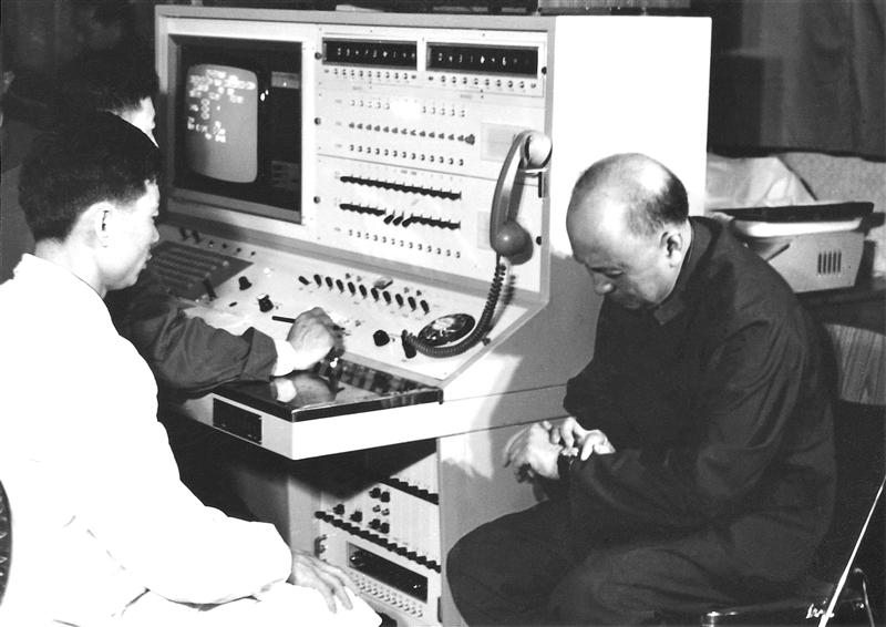 这张图拍摄于1980年5月18日,“东风-5”远程洲际导弹发射前,钱学森坐在当时的国防科委北京指挥中心一个不太显眼的座位上,“胸有惊雷而面如平湖”地拨弄着手腕上那枚陪伴他多次指挥试验的“上海”牌手表,校验发射时间。