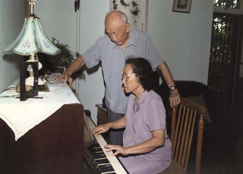 图为朱光亚、许慧君夫妇在家中弹钢琴。
