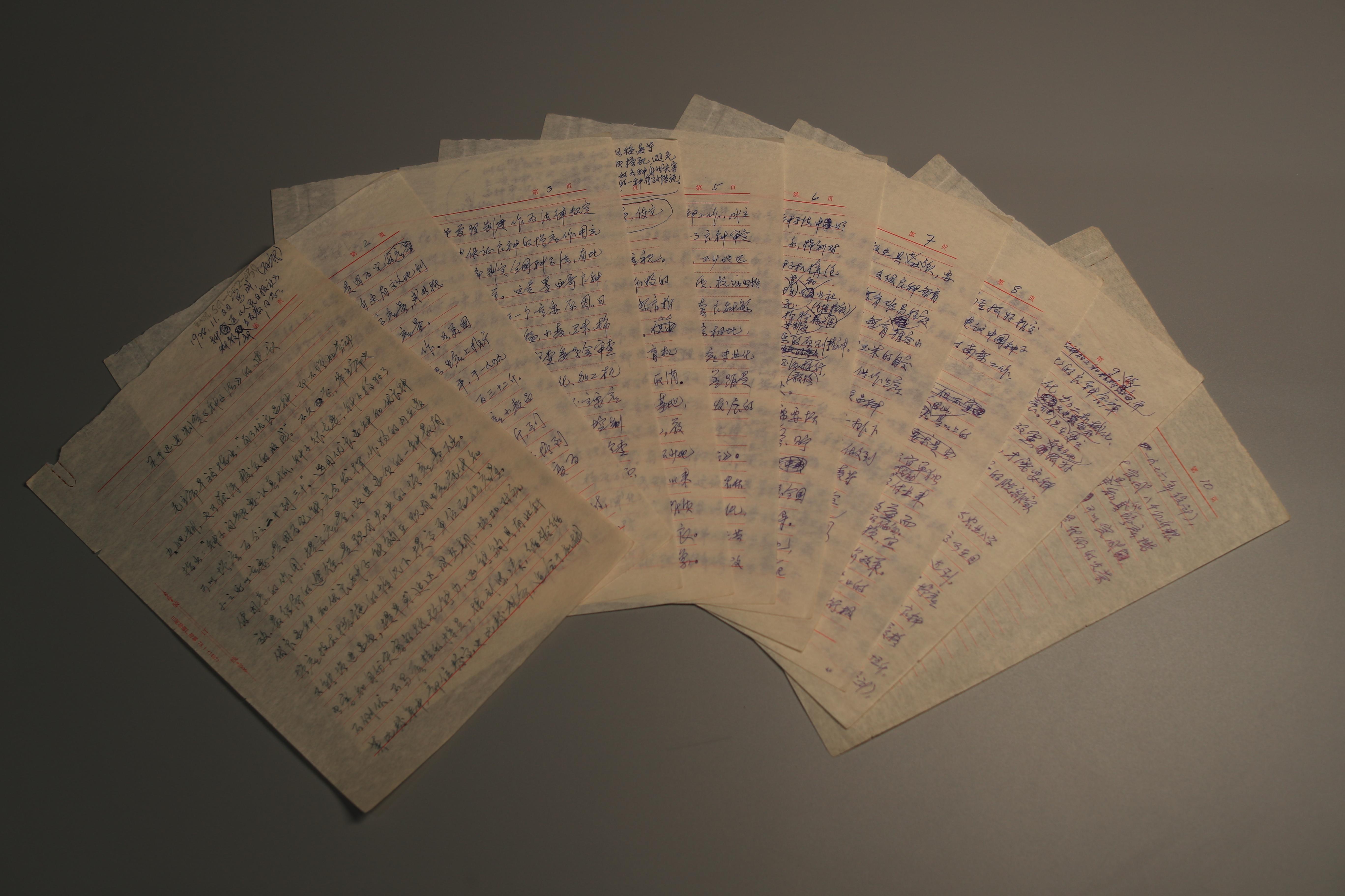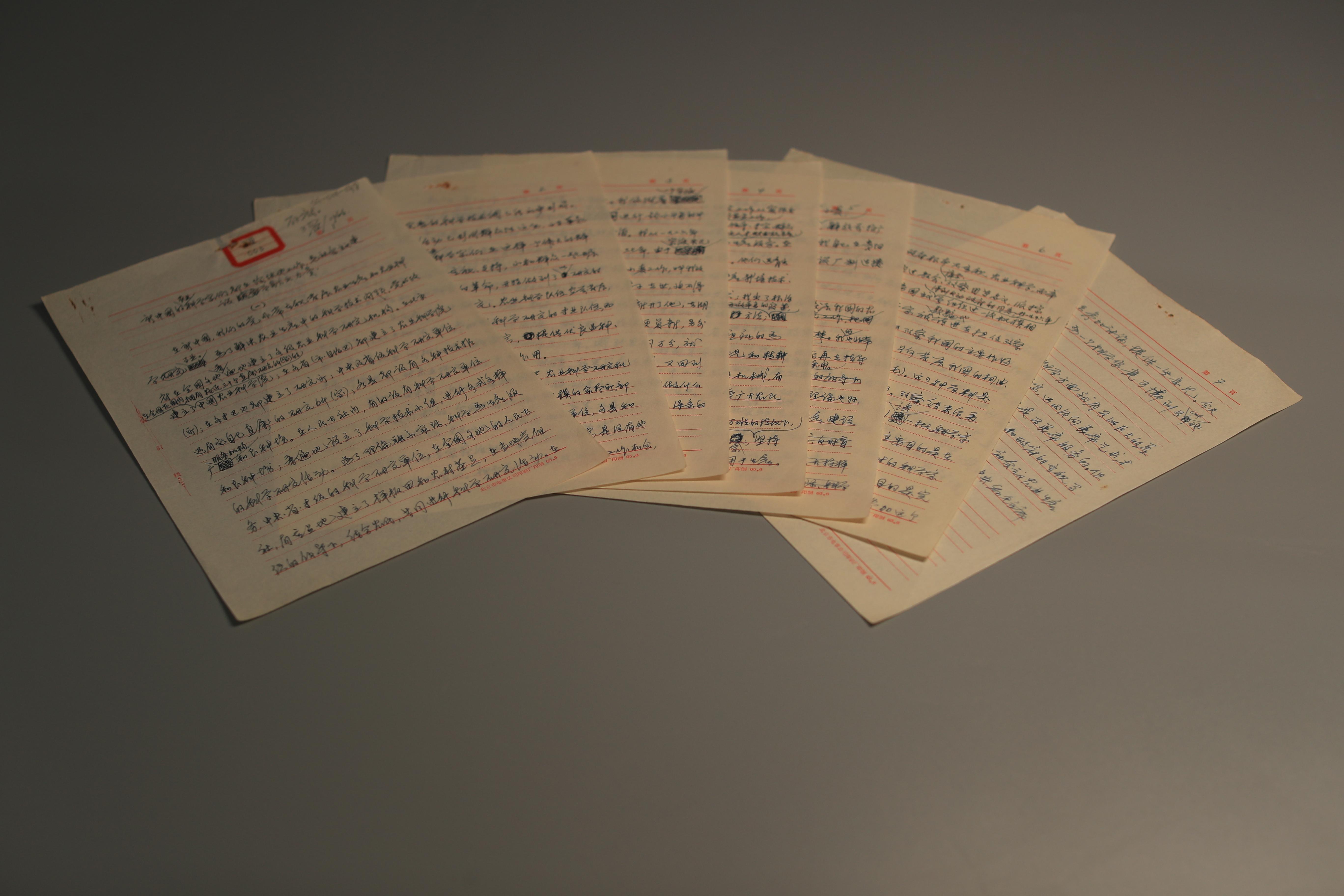 戴松恩手书建议稿 科普时报记者 季春红 摄