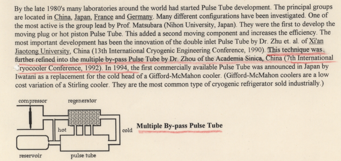 聊到兴头,周老师还翻出另一份国际文献给我看:“你看,国际同行对那套多路旁通技术评价也很高!”那一刻,他笑得像个孩子。他提出的“多路旁通脉管制冷机”,被认为是世界脉管制冷机发展的关键突破之一。这位沉默的老人,早早就走在了这个领域的前面。