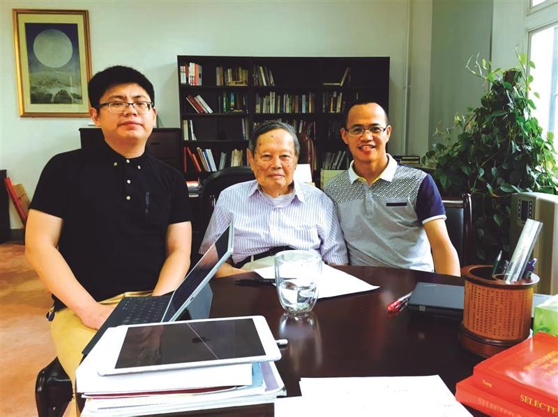 2005年春天的一个下午,在北京市中关村黄庄,彭桓武(左)与陈能宽(右)两人肩并肩坐在一起,聊起彭桓武与陈省身院士曾经一唱一和的双文诗手稿。