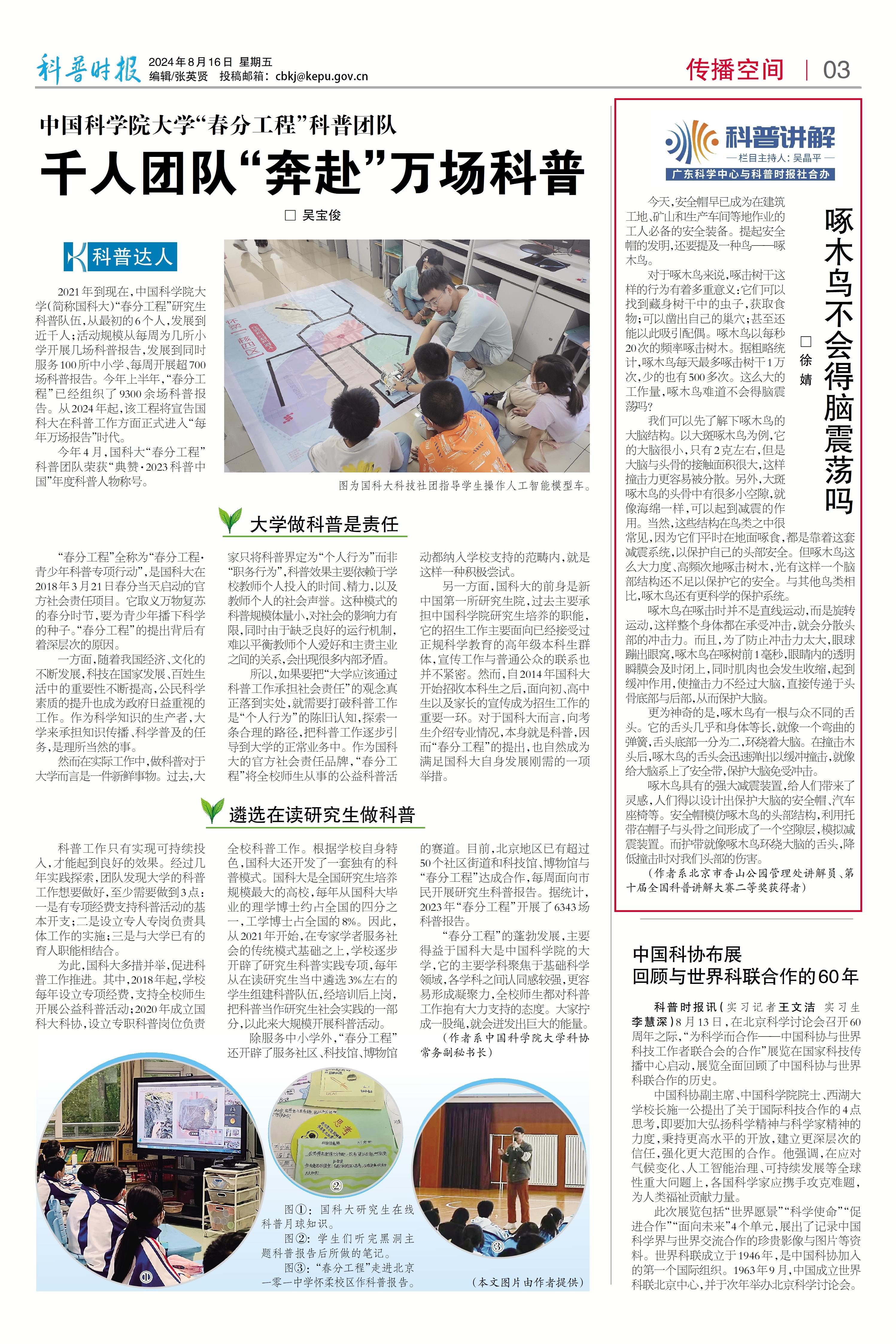 确实,近年来已有多篇刊发于《科普时报》上的文章“登录”中高考试卷:2022年全国新高考Ⅱ卷语文卷选用了谢立科、陈子扬文章《熬夜看手机当心“眼中风”》;2023年高考新课标全国Ⅱ卷语文卷选用了凌鼎年文章《难忘的腾冲皮影戏》;2024年上海市初中学业水平考试语文卷选用了汪诘文章《研究揭开大熊猫“变色”之谜》。《科普时报》上发表的文章,也有不少出现在一些省、市、区的语文试卷真题中。