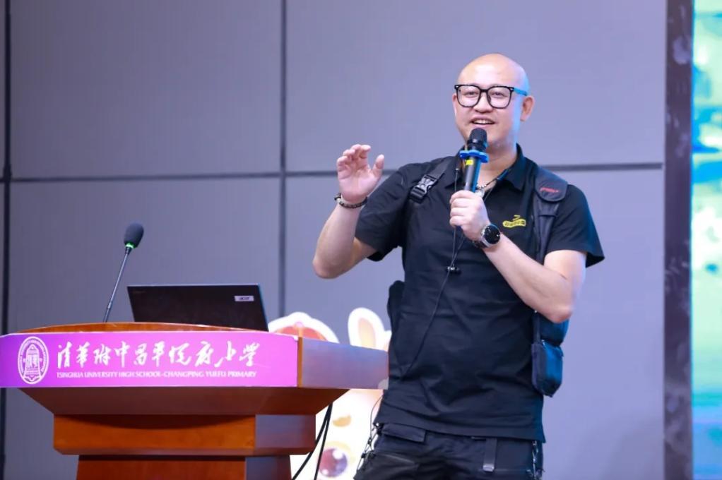 图为2024年全国科技活动周暨北京科技周主场活动期间,超侠走进清华附中昌平悦府小学,开展青少年科普科幻创作主题讲座。(作者供图)