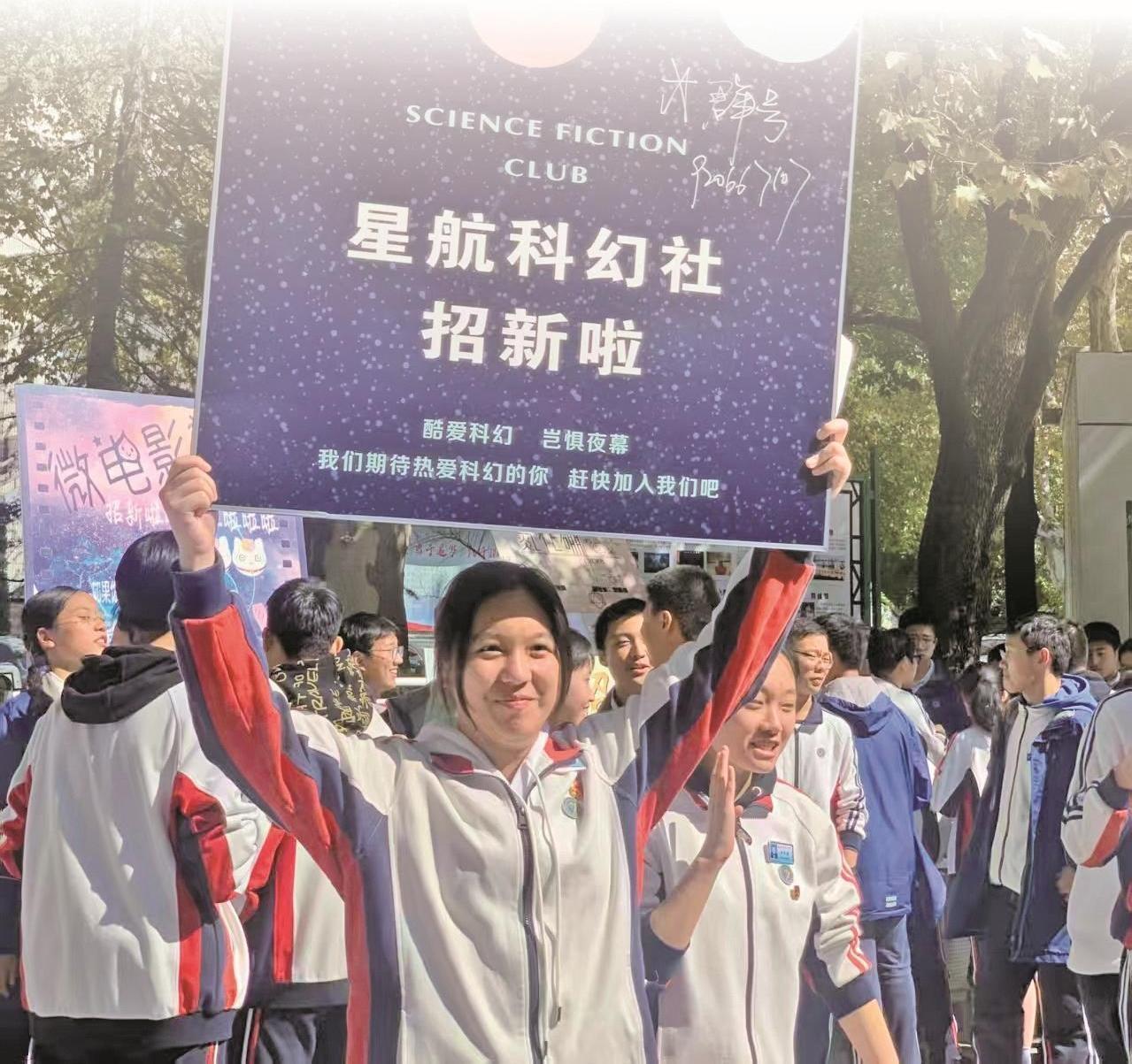如今在全国范围内,校园科幻教育的探索正逐步展开。南京市第十三中学特级教师曹勇军带领团队构建了“五个一”科幻教育课程:一个学生社团、一门校本选修、一次作文大赛、一项科幻活动、一本科幻杂志。每个“一”各有作用,相当于功能模块。譬如“科幻作品阅读与写作”选修课采用写作工作坊形式,老师讲解科幻创意、世界观构建、情节设计等,培养科幻写作思维,让想象力在科学框架下具象化表达。他们的科幻社团还举办“黑暗森林之歌”夜读沙龙,学生通过演唱、朗诵、情景剧等形式深度解读《三体》,让科幻“活”在校园里。